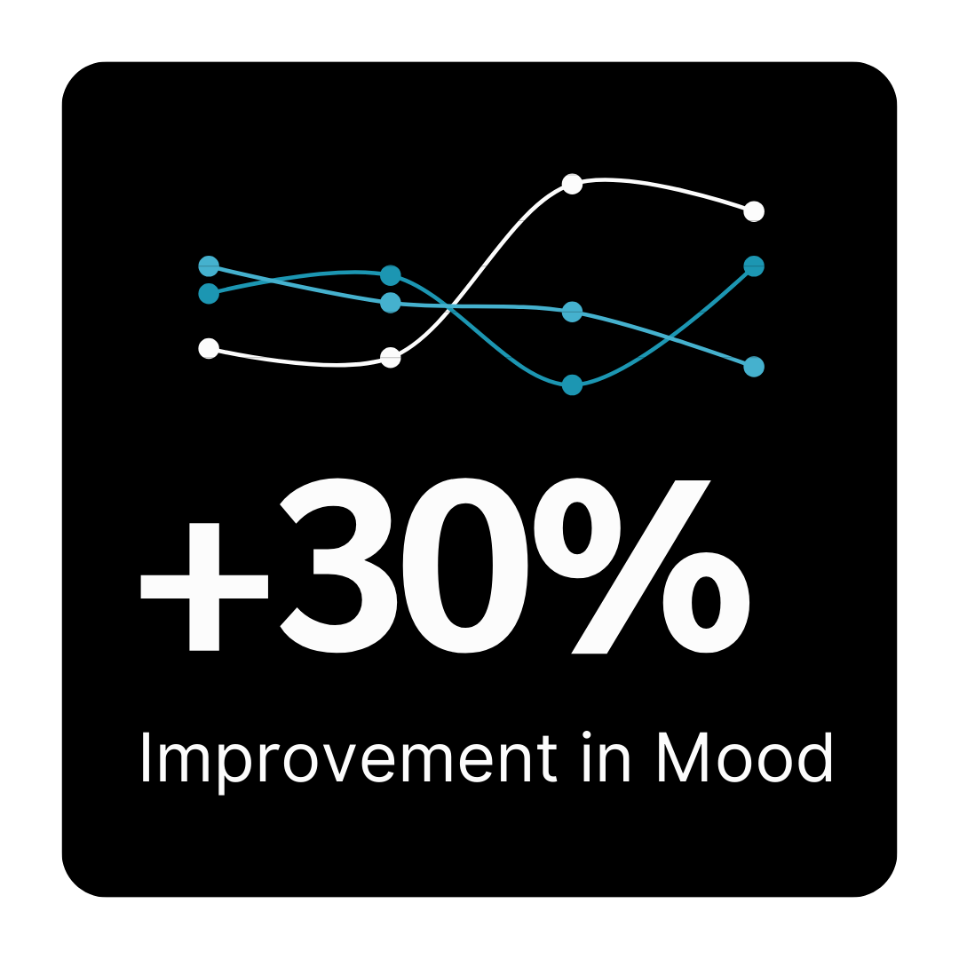 In a clinical trial assessing the effects of Ashwagandha on mood, participants showed a 30% improvement in their DASS-21 (Depression, Anxiety, and Stress Scale) scores compared to those in the placebo group. This significant improvement indicates that Ashwagandha plays a key role in enhancing mood by alleviating symptoms of depression and anxiety. Participants reported feeling more emotionally balanced, less stressed, and more resilient in coping with daily challenges. The results emphasize Ashwagandha's ability to support mental health by reducing negative emotional states and improving overall mood, making it a promising natural treatment for mood-related disorders.