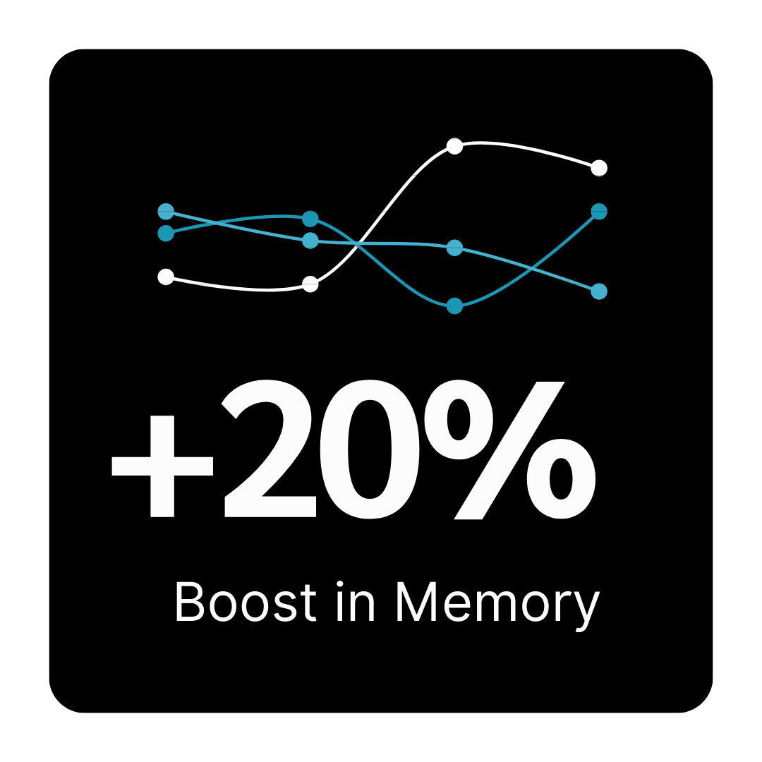 In a clinical study, participants who used Brahmi showed a 20% improvement in memory performance compared to those who received a placebo. This enhancement was evident in both the Stroop test, which assesses cognitive flexibility and processing speed, and the word recall test, which measures memory retention. The 20% improvement indicates Brahmi’s potential to enhance cognitive function, particularly in tasks involving memory recall, attention, and mental clarity. This suggests that Brahmi plays a key role in supporting brain health, improving memory capacity, and boosting overall cognitive performance.