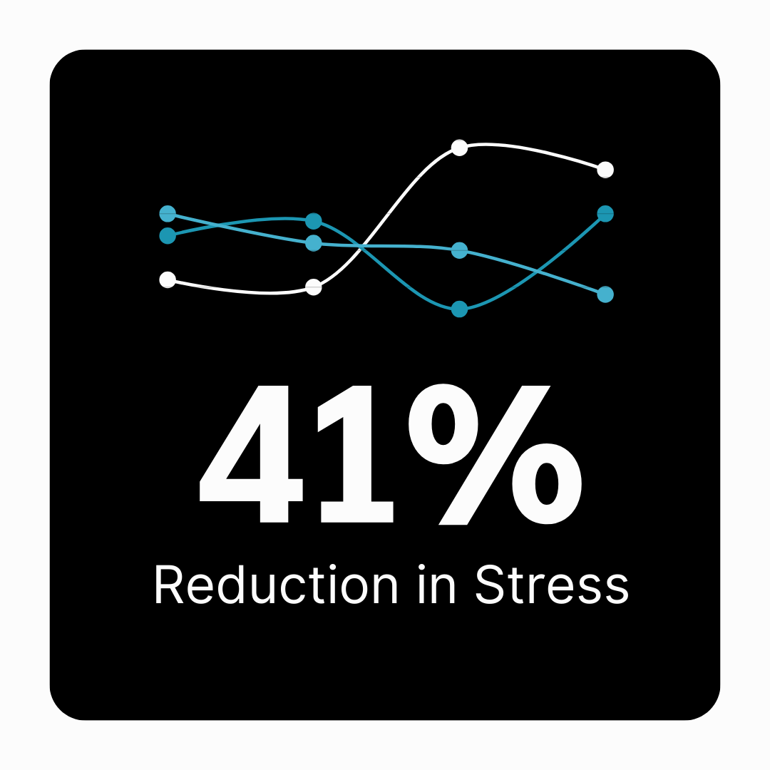 A clinical trial involving Ashwagandha demonstrated a significant reduction in stress levels, as evidenced by a 41% decrease in HAM-A (Hamilton Anxiety Rating Scale) scores among participants taking Ashwagandha compared to a placebo group. The study found that those who received Ashwagandha reported notable improvements in symptoms of anxiety, restlessness, and tension, highlighting its effectiveness in reducing stress and promoting a calm, balanced state of mind. This result underscores Ashwagandha's potential as a natural remedy for managing anxiety and improving emotional well-being.